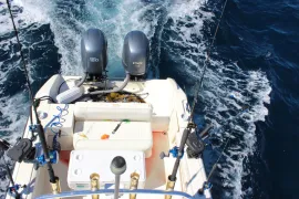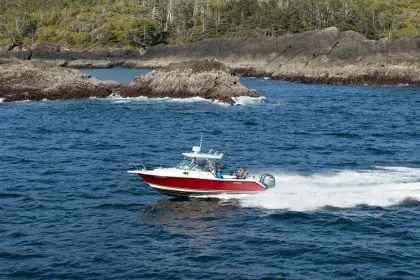After three years aboard the "Rye Not" we have upgraded out primary vessel in order to remain on the leading edge of sport fishing vessels available on the west coast of Vancouver Island. The "Red Sky", a Pursuit 255 Offshore, the replacement for the discontinued 2570 line, offers a significant increased interior space, and is equip with the best small vessel electronics available in 2013. The first thing returning guests will notice is the increase in size and comfort of the seats in this vessel. A larger displacement, twin 150HP Yamaha four strokes, a Lowrance electronics package complete with a 12 inch touch screen, structure scan side scanning sonar, and broadband Radar are a few of the other highlights of the "Red Sky". We are sure you will be pleased with this vessel. The "Rye Not" remains in the Tofino fleet and will be available as a second boat through Tofino Fish Guides. More pictures and information.