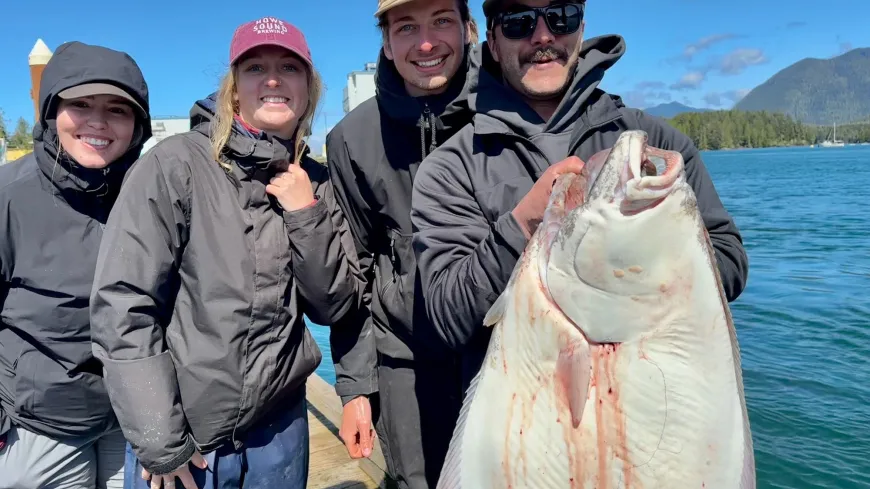 Often called Springs or King Salmon these powerful fighters are the target species of choice for most of the season. Chinook can be caught year round in the Tofino area, they are great fighters and fantastic table fare. Abundance varies daily and weekly as fish runs move down the coast often feeding for extended periods in the waters near Tofino. Typically peak numbers are in the Tofino area sometime between June and August. Chinook are the largest of the five Pacific Salmon species.Halibut